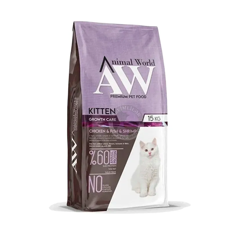 Animal World Kitten pişik balalarının gündəlik qida ehtiyaclarını ödəmək üçün hazırlanmış quru yemdir. Həzm problemlərinin qarşısını almağa kömək edən maddələrdən ibarətdir. Həssas dəri və mədəyə uyğun tərkibə malikdir.