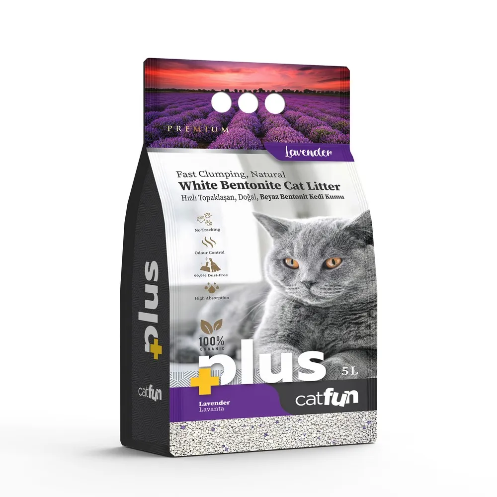 CatFun Topalanan pişik qumu (lavanda ilə) bentonit materialından hazırlanan qum növüdür. Bentonit (gil) təhlükəsiz təbii material hesab olunur. O, pişiklərdə vəhşi təbiətdəki təbii tualet yerləri ilə assosiasiya olunur. Buna görə də pişiklər bu qum növünə adətən problemsiz alışırlar. CatFun pişik qumlarının özəl formulası bir sıra üstünlüklərə malikdir: