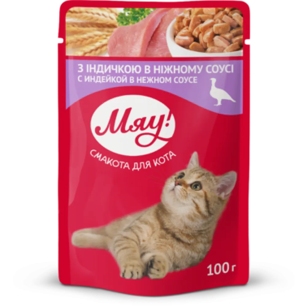 Myau Nəm yem, pişiklər üçün, yumşaq sousda hinduşka əti ilə, 100 q