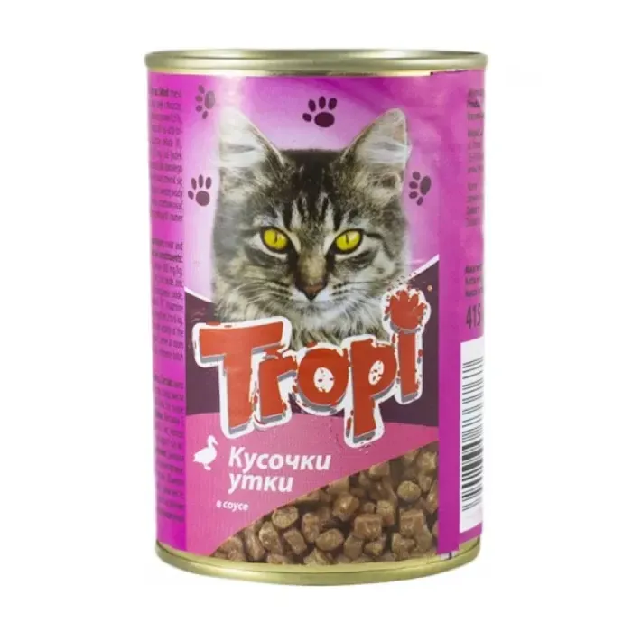 Ət və ət məhsulları (ördək 4% daxil olmaqla), dənli bitkilər, minerallar, protein bitki ekstraktları, şəkərlər, yağlar.Rütubət 81%, xam protein 8%, xam yağlar və yağlar 4%, xam kül 3%, xam lif 0,5%, taurin 200 mq/kq.